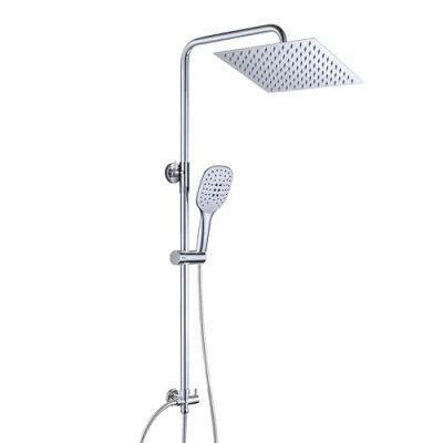 JOHO Shower Set in Stainless Steel 304 with Bathroom System Bracket Adjustable Height Bar Column Overhead Rainfall Angle Chrome 25x25cm.