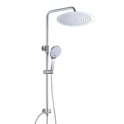 JOHO Shower Set System Bathroom in SUS304 with Bar Column Bracket Adjustable Height, Hand 3 Jets and Rainfall Head Stainless Steel Angle D25cm.