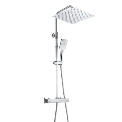 JOHO Thermostatic Valve Anti Scald 38℃ Shower Mixer Set System in SUS 304 Bathroom Bar Bracket Adjustable Height and Rainfall Head Angle Chrome 30x30cm.