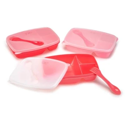 Joie Meal Seal Bento Box & Spork 3PC Pink Mix Stylish 3 Compartment Boxes with for Convenient, On The Go Meals