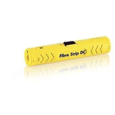 The Jokari T30700 is a Fiber Strip DC cable stripper designed for stripping fiber optic cables, with titanium nitride coated blades and optional cutting depth adjustment. It is TÜV/GS approved and suitable for DAC cables diam. 5.9 mm / 7/32". Brand: JOKARI. Main color: Yellow. Pliers type: Stripping.