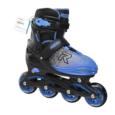 Easy size adjustment at the touch of a button over 4 sizes, brake pre-assembled and removable HQ polypropylene skeleton with micro buckle, Velcro strap and lacing for optimal and comfortable fit Inner shoe with comfortable anatomical padding and a special insole for children Rail made from robust, torsion-resistant HQ polypropylene Wheels 64 to 72 mm/82A, ABEC 3 ball bearings