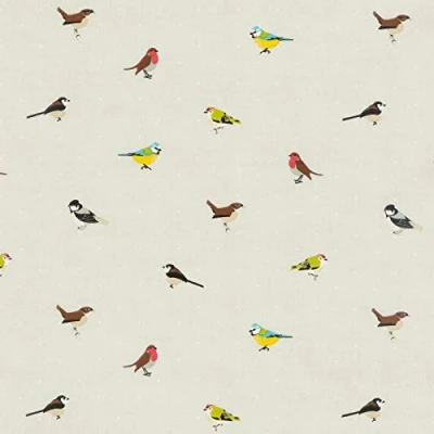 Jolee Fabrics Beige & Multi Coloured Garden Birds Cotton Oilcloth Tablecloth/Wipe Clean Table Cloth Cover Round, Rectangle or Square (Rectangle 132cm x 100cm (53" 39"))