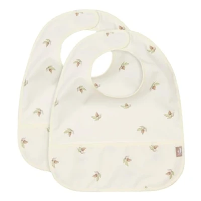 Waterproof bibs in a pack of 2 Includes Velcro fastening at the neck Material: 65% waterproof polyester/35% polyurethane Dimensions: 40 x 29 cm Care instructions: wipe clean with a damp cloth