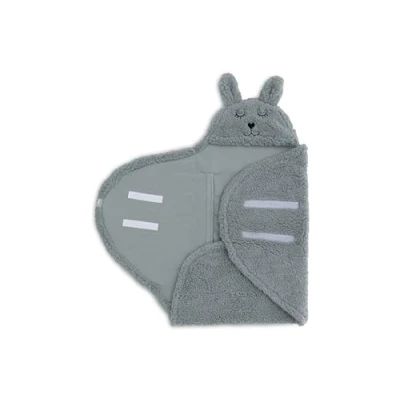 Wrap your baby in this swaddling blanket with cute ears and the bunny face on the hat The blanket is perfect for prams, car seats or Playpene, but can also be used as a bathrobe after a hot bath The fabric on the outside is made of fluffy faux fur and inside it is wonderfully soft The swaddling blanket is 100 x 105 cm in size and can be used immediately after birth. Close the blanket with the practical Velcro straps Can be machine washed at 30°C on a gentle cycle and should be laid flat to dry
