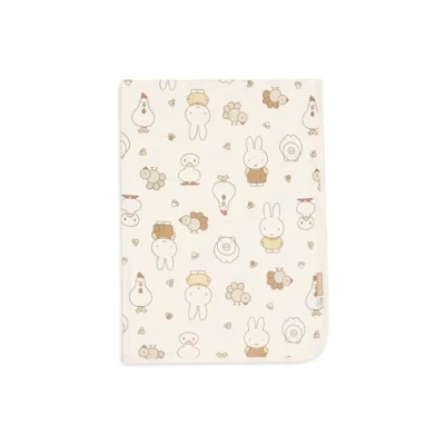 JolleinThis sweet blanket from the Miffy Family Farm theme features an all-over print of Miffy and her farm friends. The soft jersey fabric, calming oatmeal background and warm tones give the blanket a timeless and cosy look. Perfect for styling the crib and easy to combine with other items from the Miffy Family Farm collection. A lovely addition to the nursery!
