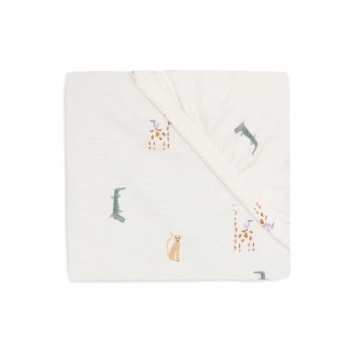 Keep your little one's mattress safe and comfortable with this cute fitted sheet. The cheerful Jungle Jambo print puts a smile on your little one's face and brings the jungle fantasy to life. The fitted sheet fits effortlessly around the mattress thanks to the elastic bands in each corner. Mix and match this fitted sheet perfectly with the blankets from the Grain Knit theme. Available in different sizes for cribs, cots and toddler beds.
