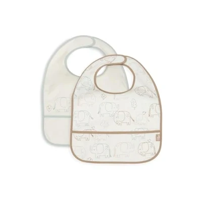 Jollein Lätzchen Baby Elephant Tales 2er Pack Wasserdicht Mit Klettverschluss Babylatz Sabberlätzchen
