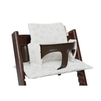 This seat reducer from the Miffy and Friends collection offers perfect comfort for your little one. With the new soft-touch material and flexible coating, it's extra soft and padded for optimal comfort. The fabric is easy to wipe clean, and the biscuit-colored Miffy print gives a calm, cute look. Fits all growing chairs—so it lasts a long time!