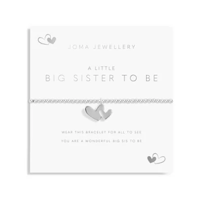 ArgentoCelebrate your little one becoming a big sister with this adorable bracelet from Joma Jewellery. Crafted with silver plating, this beaded bracelet features a double heart dangle charm. A beautiful way treat a special kid, this bracelet is displayed on a card with the slogan ‘A Little Big Sister To Be’, and a poem saying, ‘wear this bracelet for all to see, you are a wonderful big sis to be’.Silver platedDouble heart dangle charmChildren's bracelet15.5 cm stretch bracelet
