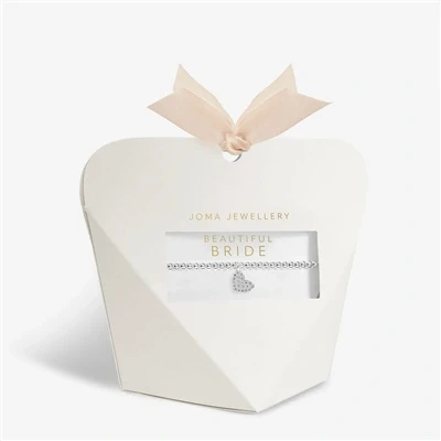 Celebrate a special bride with this beautiful bracelet from Joma Jewellery. Crafted with silver plating, this beaded bracelet features a heart-shaped dangle charm, adorned with white pavé crystals. A gorgeous gift for a special bride, this bracelet is displayed on a card with the slogan ‘Beautiful Bride’, in a fabulous box topped with a pale pink ribbon.Silver platedHeart dangle charmWhite pavé crystals17.5 cm stretch bracelet