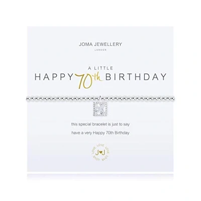 A Little Happy 70th Birthday Bracelet from Joma Jewellery. This ‘A Little’ charm bracelet is carefully plated in silver and wrapped around a lovely card with its own sweet poem and meaningful sentiment. Every order is supplied with a beautiful Joma Jewellery gift bag finished with a silk bow and ready to deliver a moment of happiness. The ‘A Little’ collection is filled with pretty charms perfect for gifting to loved ones, collecting and stacking!