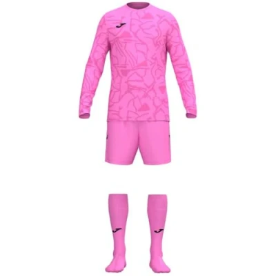 PERFORMANCE: Goalkeeper sports equipment for competition that provides optimal comfort, breathability and freedom of movement. COMFORT: Long sleeve crew neck shirt with inner masking tape to avoid irritation and improve fit, along with shorts with elastic waistband and inner drawstring for a secure and custom fit. Breathability: made from lightweight, breathable material that regulates moisture retention and keeps you dry and cool during the most intense workouts and games. Durability: Made from high-quality materials, including tensile polyester for the jersey and shorts, as well as polyamide and elastane socks, which ensure long durability and wear resistance. STYLE: Sublimated design with small contrasting details and printed Joma logos that combines functionality and style for a sporty and professional look at any competition.