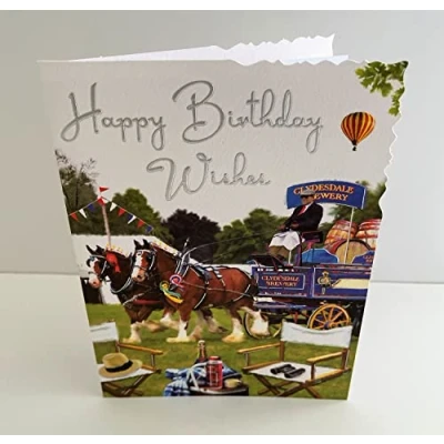 Jonny Javelin Male Happy Birthday Wishes Card Shire Horses Dray Wagon