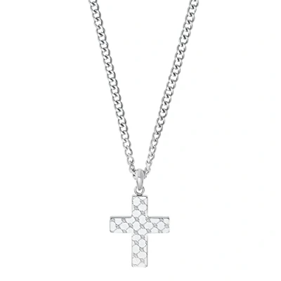 JOOP! Men's stainless steel necklace with pendant, 60 cm, silver, cross, comes in a jewelry gift box, 2031030