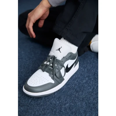 Jordan AIR 1 LOW Trainers, Men's, Size: 8, White/black/iron grey leather and imitation