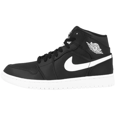 Jordan AIR Jordan 1 MID Hightop trainers black Sale at Zalando UK | Upper material: leather and textile/Lining: textile/Sole: synthetics/Insole: textile | Sale order at Zalando UK! Size: 8.5. Color: Black. Pattern: plain.