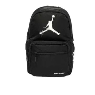 JORDAN DESIGN: Black sports backpack with iconic Jumpman logo and number 23, perfect for everyday urban style CAPACITY: Large 30 litre interior space with dimensions 45 x 30 x 15 cm, ideal for carrying everything you need ORGANIZED COMPARTMENTS: Main pocket with double zip, dedicated compartment for laptops up to 13", multiple internal and external pockets OPTIMAL COMFORT: Adjustable shoulder straps and padded back for comfortable carrying during daily use DURABLE MATERIAL: Made of sturdy and durable black fabric, with high quality zippers for long time use