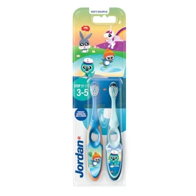 Jordan® Step 2 Children's Toothbrush for 3 5 Years, Soft Bristles, Double Ergonomic Handle & BPA Free, Blue Colour, Pack of Units