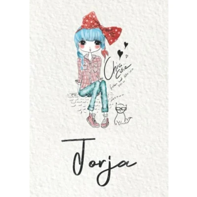 Jorja: Notebook A5 Personalized name Jorja Birthday gift for women, girl, mom, sister, daughter Cover: Fashion girl with cat 120 lined pages journal, small size (ca. 6 x 9 inches)