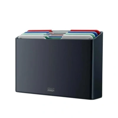 Joseph Folio Colour coded Chopping Board Set of 4, Slimline storage case, Regular Graphite/Coast