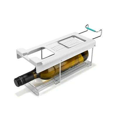 Space-saving under-shelf fridge storage maximises unused space and helps reduce fridge clutter Securely holds standard bottles of wine and champagne, keeping them safely in place and off fridge shelves Innovative folding mechanism allows the rack to collapse flat when not in use, saving even more space Simple to install and reposition using front and back clips—no tools or hardware required Keeps bottles easily accessible and neatly organised for a more efficient fridge layout