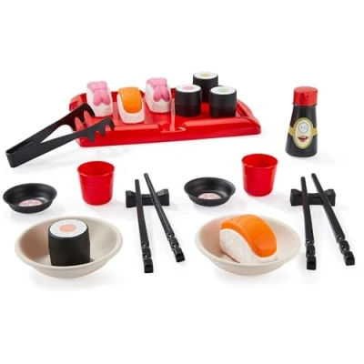 Space for small cookers: Ecoiffier toys offers children faithful reproductions of kitchen utensils and kitchen appliances for cooking like chefs. Space for small cookers: Ecoiffier toys offers children faithful reproductions of kitchen utensils and kitchen appliances for cooking like chefs SPACE FOR LITTLE CUISTOTS - Toys Ecoiffier offers children faithful reproductions of adults' kitchen utensils and cooking appliances to cook like chefs. A COMPLETE MEAL: This set includes 2 sushi, 4 makis, 1 soy sauce and all the essential accessories for tasting sushi PLAY TO GROW BETTER: It is by imitating adults and manipulating different toys that children learn to understand the world around them, to become more skillful and autonomous in everyday life. Toys from France guarantee: Jouets Ecoiffier manufactures its products in Oyonnax in the Ain region thanks to the investment of 350 people that the family business directly and indirectly employs., Manufacturer: Jouets Ecoiffier
