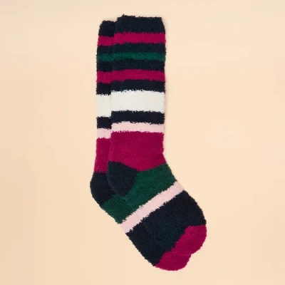 Raise your sock game with the Joules Berry Red Fluffy Socks. Designed to elevate your comfort, they are perfect for pairing with PJs or wearing under your boots. They have a contrasting colour heel and toe and are available in a range of stripes and patterns.Fits womens shoe size 4-8.Made from 69% Polyester, 30% Recycled polyester, 1% Elastane.Machine washable.