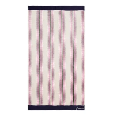 The Joules Fruity Stripe Bath Sheet in Oat will bring a sublte splash of pastel colour into your bathroom, with a green and pink striped pattern against a neutral cream backdrop. Made from 100% cotton, it is beautifully soft on the skin.Joules Fruity Stripe Bath Sheet dimensions: 90cm x 150cm.A matching hand towel and bath towel are available separately for a coordinated look in your bathroom.Made from 100% BCI Cotton.Machine washable.