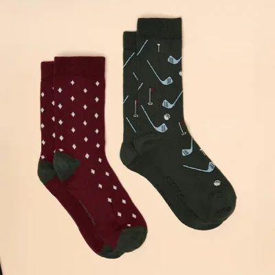 Joules Mens Red Green Kingsbury 2 Pack Socks Size 7 11