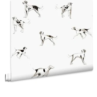 WallpaperDirectA delicate monochrome paper with dogs at play. Shown in the creme colourway.