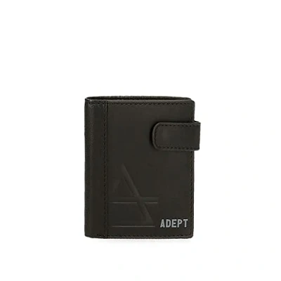 Wallet 8.5 cm x 10.5 cm x 1 cm made of Leather It has six slots for storing cards, one compartment for the ID and two separate spaces for the banknotes Incorporates a wallet with click closure Special protection system for RFID cards that blocks signals from unauthorized radio frequency scanning devices By Adept