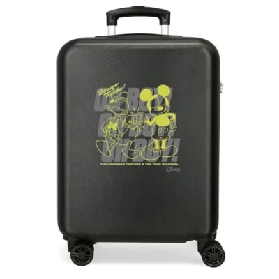 Joumma Disney Mickey Oh Boy Cabin Suitcase Black 38 x 55 20 cm Hard ABS Combination Lock Side 35L 2 kg 4 Double Wheels Luggage Hand Luggage, Black/White,