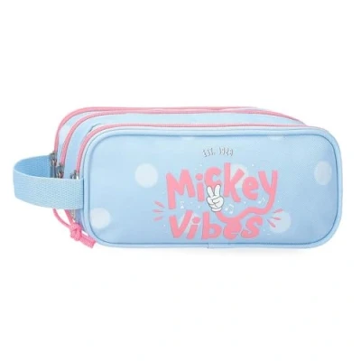 Pencil case 22 cm x 10 cm x 9 cm made of polyester. Three independent zipper compartments to enhance organization. Perfect for organising and collecting pencils and pens. Side handle for hanging