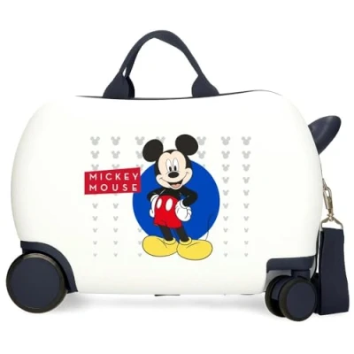 Children's suitcase 31 cm x 45 cm x 20 cm. It has a capacity of 24.6L and weighs 1.8kg. and is made of ABS, a rigid and lightweight material. Dual front wheels with multi-directional swivel. The maximum recommended weight that the suitcase supports is 25 kg. (Perfect for a child between 3 and 6 years old) Elastic bands on both sides to keep luggage organized. Multiple ways to wear it: pull it trolley, over the shoulder with the adjustable shoulder strap or sitting on it.