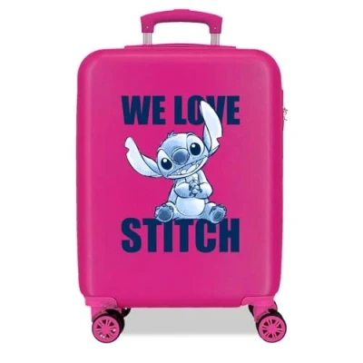 Joumma Disney Stitch Cabin Suitcase Pink 38 x 55 20 cm Rigid 2 kg Combination Lock Side ABS 35L Hand Luggage, Pink, One Size,
