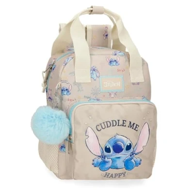 Joumma Disney Stitch Cuddle Me Happy Backpack Preschool Beige 23x28x10 cm Polyester, Beige, One Size,
