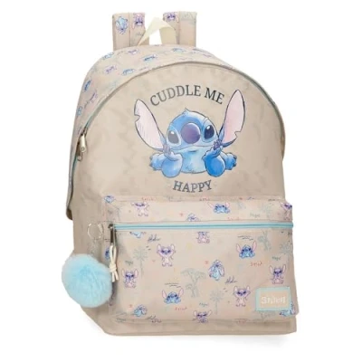 Joumma Disney Stitch Cuddle Me Happy School Backpack Beige 31x44x15cm Polyester, Beige, One Size,