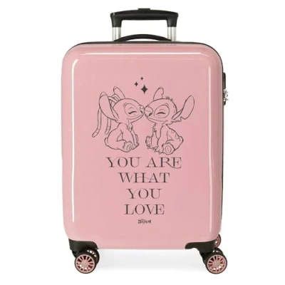 Joumma Disney Stitch You Love Cabin Suitcase Pink 38 x 55 20 cm Hard ABS Combination Lock Side 34L 2 kg 4 Wheels Hand Luggage, Pink,