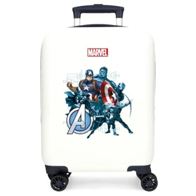 Joumma Marvel Avengers Legendary Children's Suitcase Cabin Blue White Hard ABS Combination Lock Side 4 Wheels Hand Luggage, White,