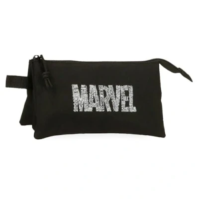 Joumma Marvel Characters Logo Pencil Case Triple Black 22x12x5cm Polyester 1.32L, Black/White, One Size,