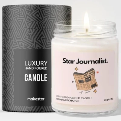 Journalist Gifts Luxury Soy Wax Candle Vanilla, Jasmine, Sugared Almond Makester