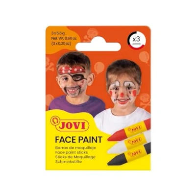 This kit contains red, white and black colors. Become a pirate or a clown, you can create a multitude of fun and creative characters for your costume party, carnival or Halloween. Case of 3 makeup sticks with large covering capacity, comes in bright and vivid colors that can be mixed together. Recommended for boys and girls ages 3 and up Makeup for children use as well as for adults. Safe and harmless, for all skin types free from parabens and major allergens. Dermatologically tested; non-toxic. Made in Spain. Being a stick makeup can be sharpened, facilitating profiling and retouching details. Very easy to apply, pleasant and soft to the touch thanks to its greasy base that does not dry out. Ideal for children's parties, birthdays, carnival, school events, Halloween, festivals, theatrical performances or sporting events! Give the finishing touch to your costumes and enjoy the party! Easy to clean with a damp wipe or with soap and water.