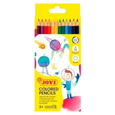 With the colouring pencils from Jovi in their many vibrant colours, you can let your imagination run wild and simply bring them to the paper by drawing and painting The colouring pens are suitable for children from the 3rd years of age. They are ideal for nursery, school and adults, for example for designing bullet journals The hexagonal shape of the pens prevents rolling and supports the correct pen posture. They are easy to sharpen The leads of the wooden coloured pencils are firmly connected to the coating, so that they are protected from breakage. So you can enjoy it for a long time Box contents: Jovi coloured pencils in 12 different colours in a lockable cardboard box, Manufacturer: Jovi