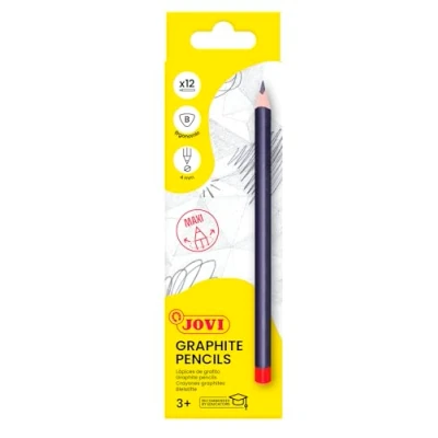 Pencils for girls and boys from 3 years old Case of 12 units; graduated lead B MAXI triangular shape for easy grip For any type of drawing support Easily sharpen, Manufacturer: Jovi