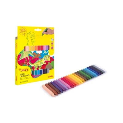 The Jovi Jovicolor wax painters glide very easily over the paper leaving a soft and homogeneous stroke. Ideal for shading and colour mixes by painting over The very good covering wax crayons are suitable for all ages and due to their slightly thicker shape, ideal for toddlers in kindergarten or students in primary school The pens do not break when they fall off and are easy to sharpen so they are very durable and will give you long-lasting enjoyment when painting The colouring pens are odourless and do not leave stains on the hands. Stains on textiles can be easily removed by hand washing with soap Box contents: Jovi Jovicolor wax pencils in 24 different colours in a lockable cardboard box