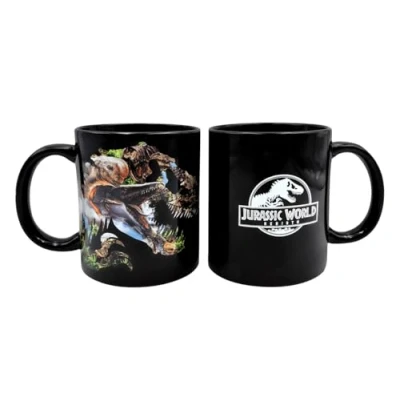 Jurassic World Ceramic Mug Black mug with cool motif Capacity: 320 ml for hot and cold drinks Care instructions: dishwasher and microwave safe In gift box with opening 12 x 9 x 10 cm A real eye-catcher in any kitchen, office, living room and dining room