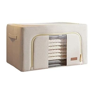 Cotton Foldable Clothes Storage Boxes CLEAR WINDOW & TWO SIDED OPENING DESIGN - This organizer has a transparent window; you can see the contents at a glance without having to move and open it, which can help you identify items quickly Stackable & Foldable Design - The storage box has a 5mm solid lacquered steel frame and a 2.5mm mdf board at the bottom DOUBLE ZIPPER AND HEAVY DUTY HANDLES - Double zippers open and close smoothly and quickly, and increase service time LARGE CAPACITY STORAGE BOX - The storage box is available in three sizes to meet your different needs