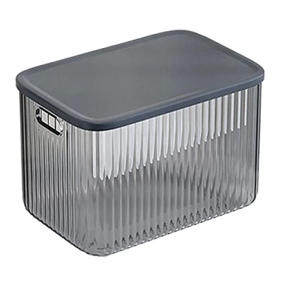 Storage box with blue lid 24.5 x 16.5 x 16.5 Space saving, optimal for organizing your items Take advantage of your space These boxes are the optimal size so you can organize all kinds of items Features slots like handles, to help carry them effortlessly