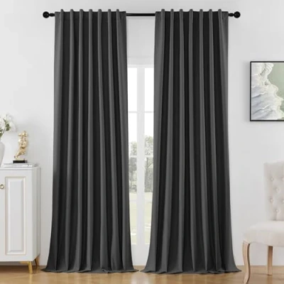 Soft Textured Fabric: Curtains&drapes are crafted from 100% polyester for a soft drape and elegant flow. Joydeco blackout curtains offer heavy-duty materials for smooth hanging. Linen-inspired visual creates a relaxed and stylish home environment 100% Blackout Curtains: Room darkening curtains block all sunlight. Thermal insulate curtains against heat&cold to lower energy costs. UV protection safeguards furniture and floors from sun damage. Experience serene comfort with these must-have curtains Multiple Hanging Options: Install thermal curtains effortlessly with 3 methods-back tab, rod pocket(3.15" diameter), or clip rings(not included). Rod pockets fit most standard rods for a neat window look, back tabs create natural pleats, and clip rings ensure easy removal for cleaning Versatile Occasions: These grey blackout curtains fit various settings, such as living rooms, bedrooms, patios, or room dividers. Blackout curtains seamlessly integrate with boho, vintage, modern farmhouse and other décors, cultivating inviting atmospheres Easy Maintenance: Machine wash cold, no bleach. Tumble dry low. Iron on low temperature if needed. Wrinkle-resistant window drapes maintain vibrant colors after washing, ideal for households needing easy-care curtains